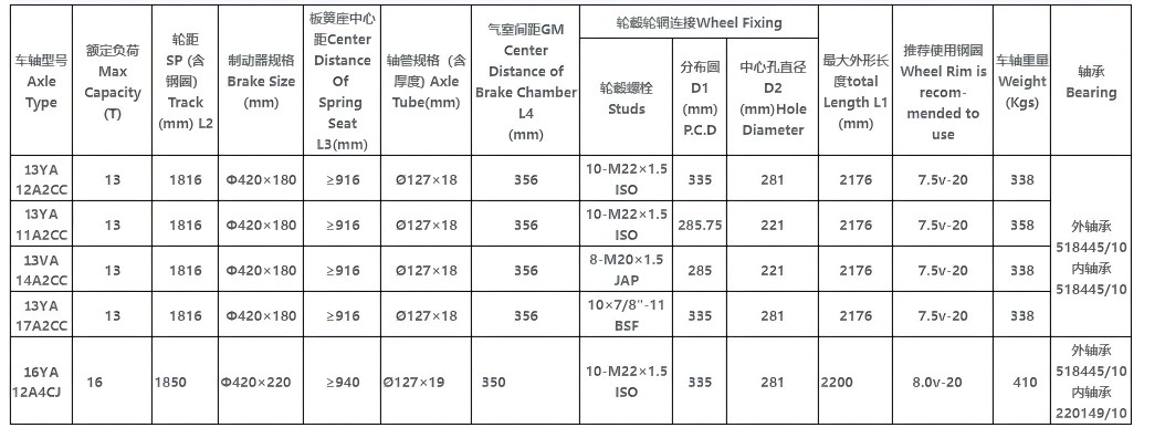Iki minangka Axle Amerika 13t standar. Liwat desain sing dioptimalake, entuk entheng tanpa kurang ngorbanake kekuwatan, nyuda bobote dhewe. Axle Axle standar mung 330Kg. Iku kuwat lan tahan tahan tahan, ningkatake sifat mekanik sakabèhé gandar, lan tahan sing apik banget lan kekarepan.